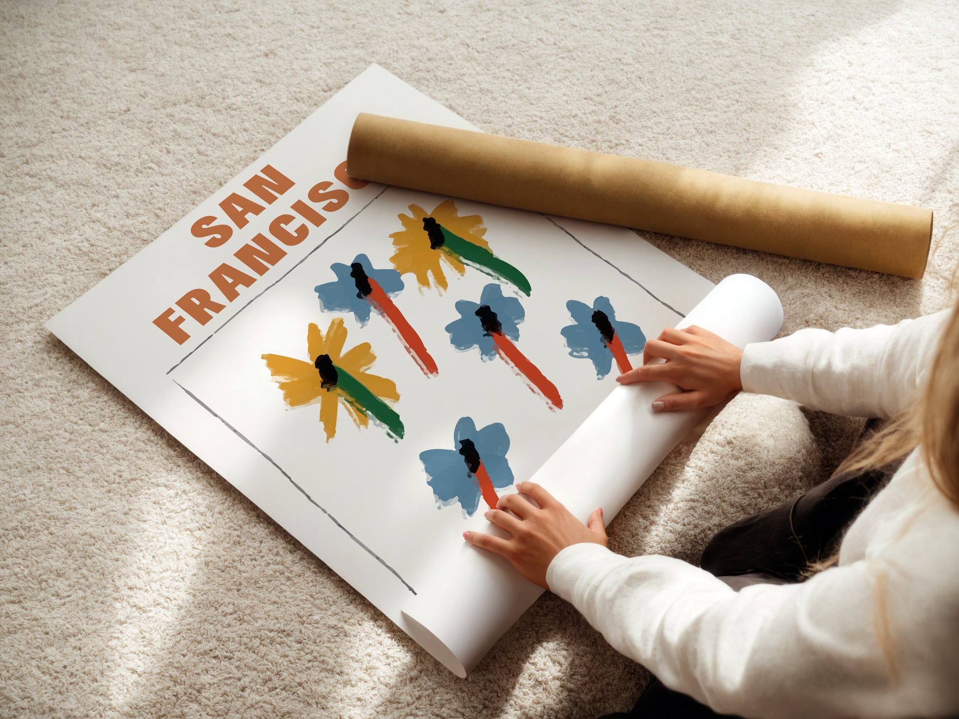Inspired by the 1960s counterculture and hippie movement, this San Francisco art print takes design hues from abstract watercolours, 60s artists and of course the famous 67 legendary song, San Francisco (Be sure to wear flowers in your hair) Written by John Phillips and sung by Scott Mckenzie. Add some bohemian soul to your space with this abstract flower design.