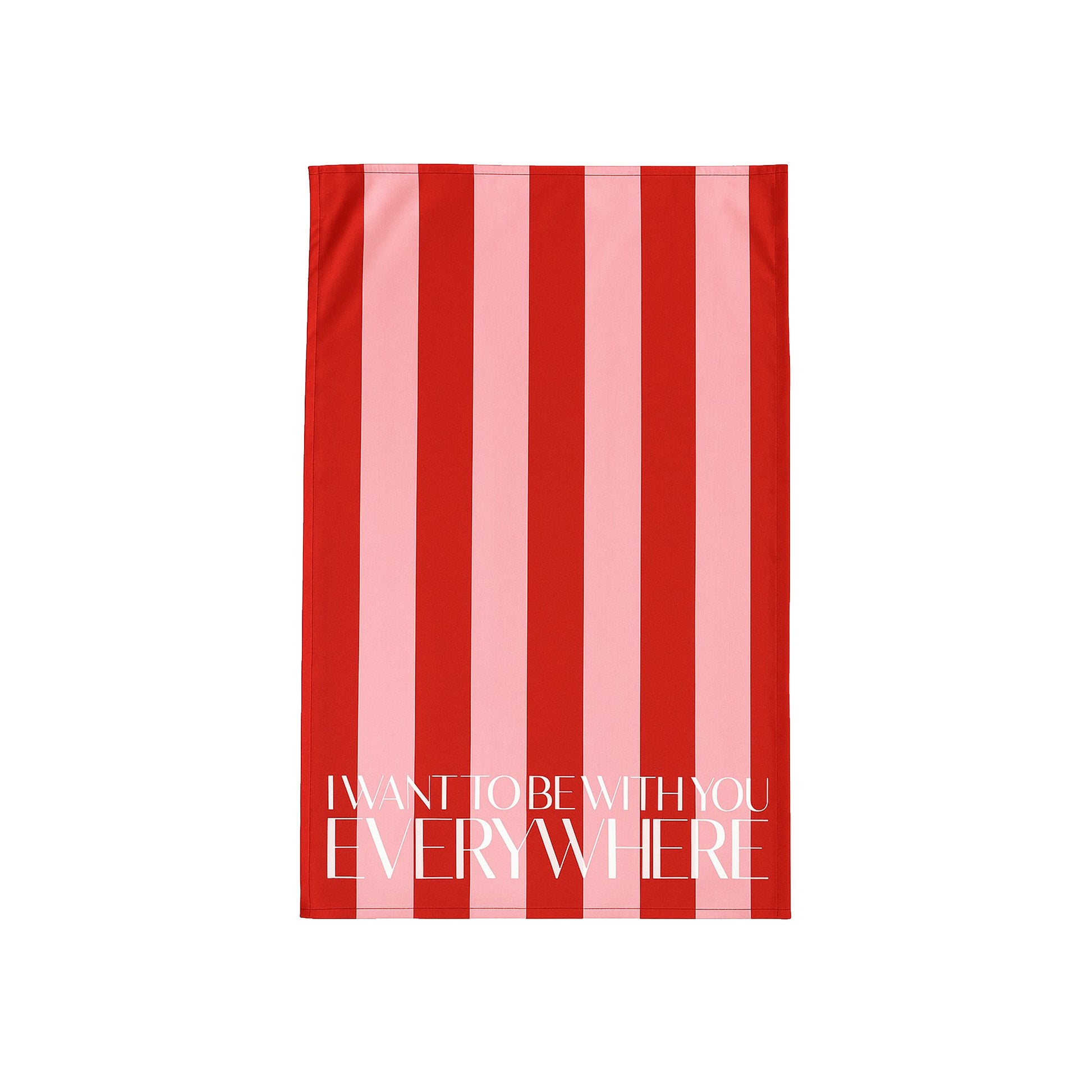 1x I Want To Be With You Everywhere Fleetwood Mac inspired Tea Towel in pink and red stripe featuring a nod to the classic 1987 hit song Everywhere.