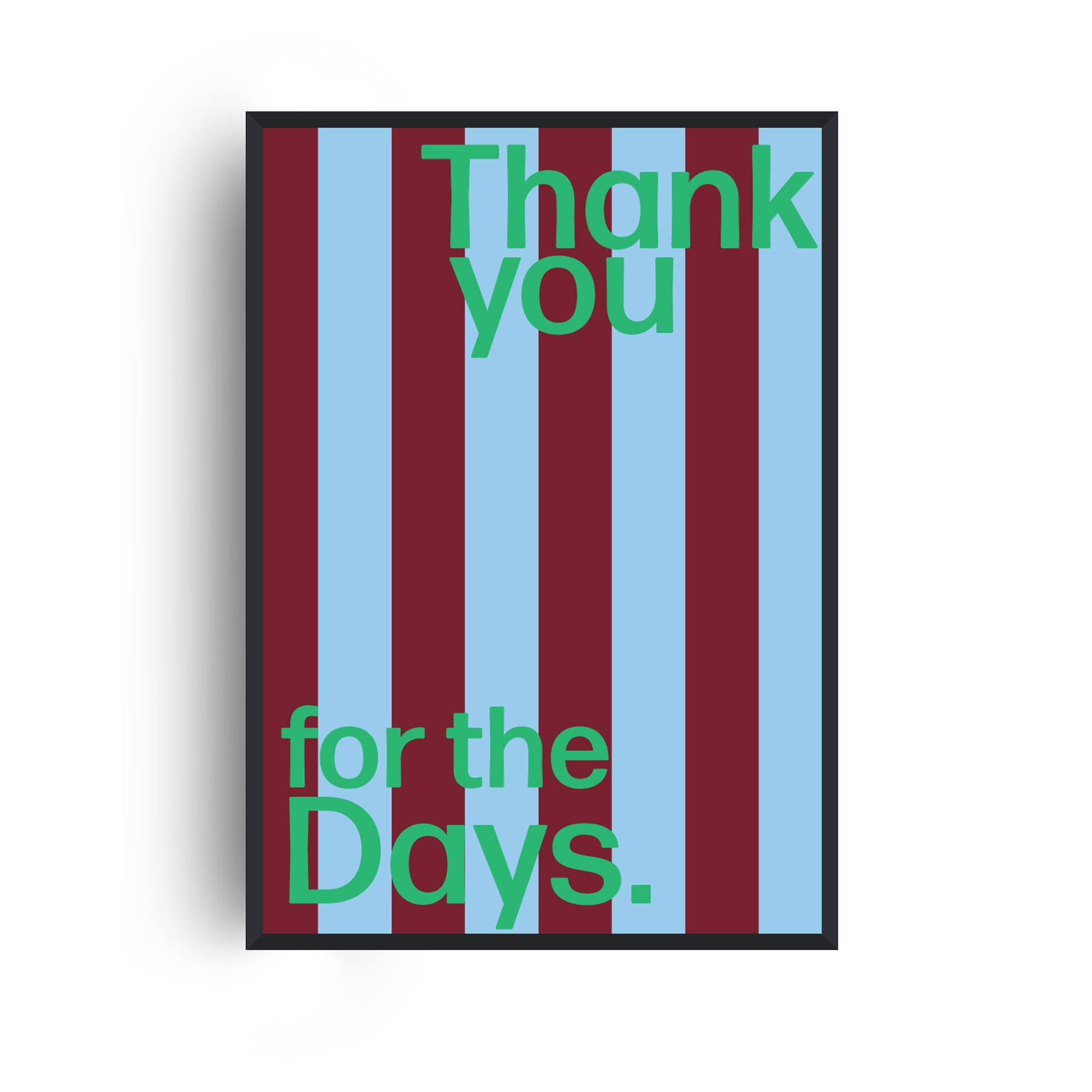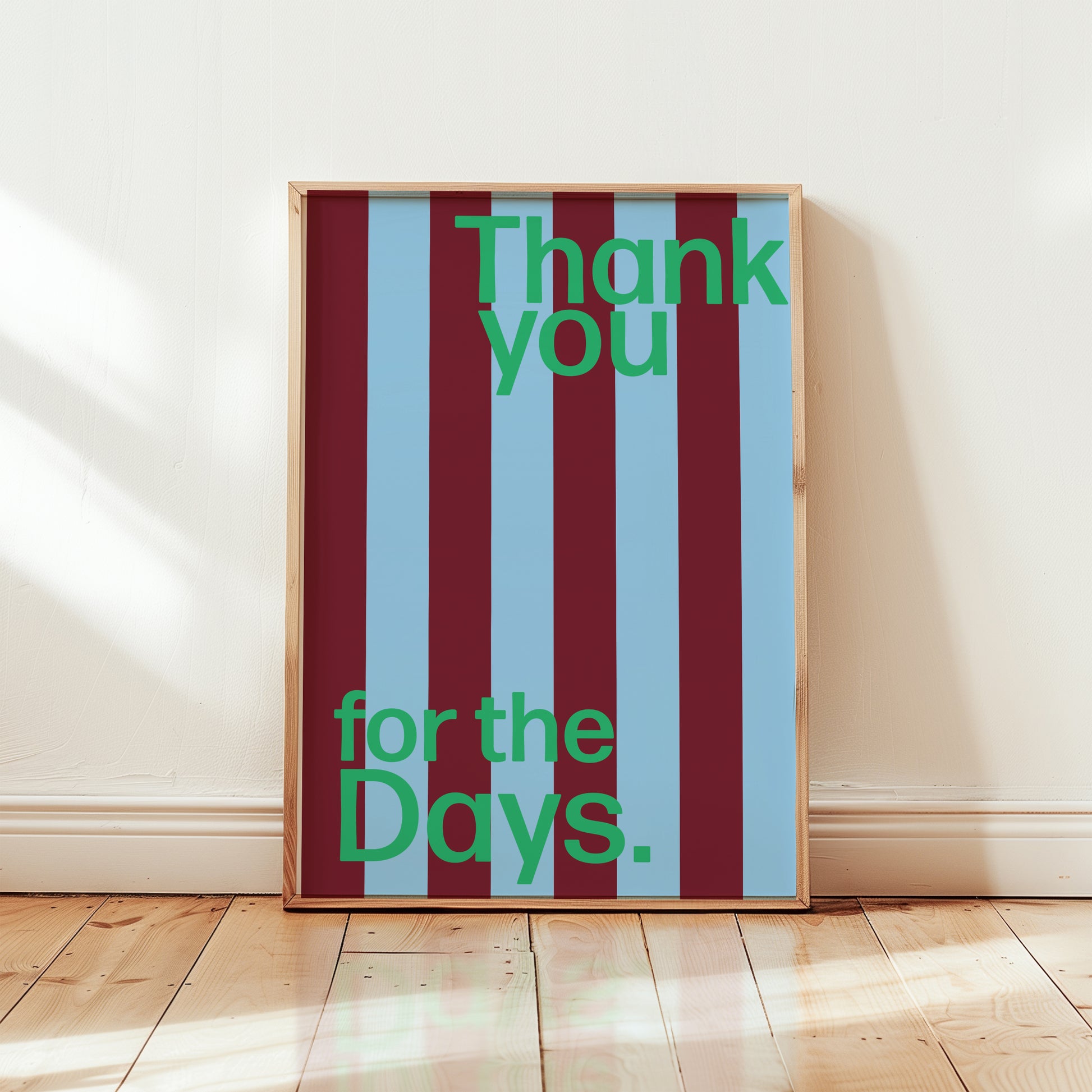 Featuring retro-inspired stripes and punchy typography, this art print is a vibrant tribute to gratitude, good times, and golden memories. Designed to bring a pop of colour and a hit of nostalgia to your space, it’s perfect for music lovers, memory hoarders, and anyone who knows the power of a great lyric.